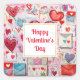 Valentine's Day stickers with a fun mixed media style pattern. Big red hearts and various random shapes scattered around making a delightfully cute pattern.