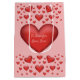 Destei's red hearts in different sizes on a blush pink background colour. There is also a personalizable text area over the big heart in the middle.