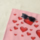 Destei's red heart shape in different sizes on a blush pink background colour. There is also a personalizable text area on the big heart in the middle.
