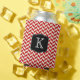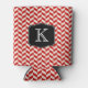 Red Herringbone Chevrons Pattern with Monogram Can Cooler