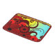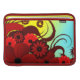 Hibiscus: Red – HIRE100 © Sunny Mars Designs. Chic, beautiful, girly red floral custom printed horizontal Rickshaw 11" Macbook Air Sleeve Cover with gorgeous pretty dark crimson or maroon red tropical hibiscus design on colourful yellow and blue background. © Sunny Mars Designs.