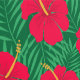 Red Hibiscus Flowers on Green Tropical Leaves Wallpaper