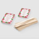 These fan wedding programs feature watercolor tropical red hibiscus flowers. One side of the fan has the ceremony and the other side lists the bridal party. These wedding programs are part of a collection which includes a full range of matching wedding stationery such as wedding invitations, reply cards, information cards, address labels, stickers, postage stamps, envelopes, favour boxes, wishing well cards, menus and much more. Visit the collection pages in our store to see the full range.