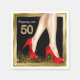 Elegant black and gold glitter red high heel shoe womans 50th birthday paper napkins. These beautiful red and gold high heel shoe 50th birthday party napkins are easily customised by adding text in the font style of your choice.