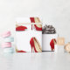 This wrapping paper features a tiled image of a pair of red high heels. The background can be customised if desired.