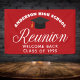 A classic custom class reunion party welcome banner in red and white typography for a high school, college, or university. Customise with your school name and graduating class for great personalised alumni celebration decor.
