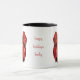 Cute red round holiday ornament with bow appears on this coffee mug you can customise.