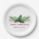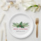 Red Holly Leaves Bouquet Christmas Holiday Paper Plate