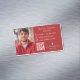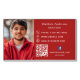 A brick red background, white text. Personalise and add Your photo, name, title, phone number, mail and website address, add your own QR code to your website or social media account.