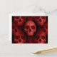 A postcard with a red evil fanged skull design printed on it. This is a red version of my black and white version. I think these make great Halloween decorations if framed.