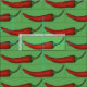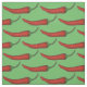 Fabric features an original marker illustration of rows of red hot cayenne chilli peppers, printed on a green background.