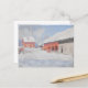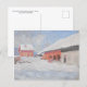 A fine art postcard by Claude Monet (1840-1926), a French Impressionist, titled, Red Houses at Bjornegaard in the Snow, Norway (1895). A Nordic winter landscape of a horse barn and a red house in the snow.