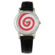 Introducing the mesmerising **Red Hypnotising Spiral Watch** on a classic black leather strap. This striking timepiece features a captivating red spiral design on its face, drawing you in with its hypnotic allure. The bold, swirling pattern creates a sense of depth and motion, making it not just a watch, but a conversation starter. Perfect for those who appreciate unique and eye-catching accessories, this watch combines classic elegance with a modern twist. The black leather strap adds a touch of sophistication, while the vibrant red spiral brings a dynamic edge. Whether you're dressing up for a night out or adding a pop of colour to your everyday look, the Red Hypnotising Spiral Watch is the perfect statement piece.