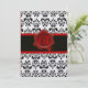 RED, ICE AND BLACK DAMASK ,WAX SEAL MONOGRAM INVITATION
