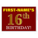 Red, Imitation Gold "16th BIRTHDAY" Birthday Card