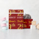 This wrapping paper design features a message like "First-Name’s 29th BIRTHDAY!", with the "29th" having a faux/imitation gold-like colour appearance. The name can be customised, and the background is coloured red. It could perhaps be used when wrapping gifts being given for somebody’s twenty ninth birthday. [~Z0000178]