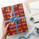 This wrapping paper design features a message like "First-Name’s 43rd BIRTHDAY!", with the "43rd" having a faux/imitation gold-like colour appearance. The name can be customised, and the background is coloured red. It could perhaps be used when wrapping gifts being given for somebody’s forty third birthday. [~Z0000178]