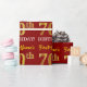 This wrapping paper design features a message like "First-Name’s 70th BIRTHDAY!", with the "70th" having a faux/imitation gold-like colour appearance. The name can be personalised, and the background is coloured red. It could perhaps be used when wrapping gifts being given for somebody’s seventieth birthday. [~Z0000178]