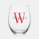 Red Initial Letter and Black Name | Elegant Stemless Wine Glass