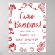 Red Italian Cute Ciao Bambina Baby Shower Welcome Poster
