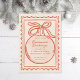 Festive border with scallops, ribbon tied ornament in the centre. All text is editable for your party. Original illustration by Becky Nimoy