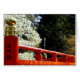 White cherry blossom contrasts with the vermilion red of this Japanese bridge, making a beautiful springtime scene. In Japan red and white are the colours of celebration.