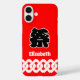 This personalised phone case is designed with a classic red happi coat pattern. The Japanese kanji character "matsuri," which means "festival," appears in black with a white outline, and an interlocking Yoshiwara chain pattern appears in white along the bottom. You can have your own name printed on the case! Just type it into the section above and watch the case magically update!