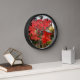 Decorate a living space with this stylish wall clock with black numerals that features a colourful photo image of bright, red maple leaves and a miniature, red Shinto shrine in a Japanese garden. Use to decorate a living room, dining room, kitchen, bedroom, or any other room. Select your clock size and style. Photo: Point Defiance Park Japanese Garden