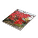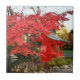 Ceramic tile featuring a colourful photo image of bright, red maple leaves and a miniature, red Shinto shrine in a Japanese garden. Select your tile size. Photo: Point Defiance Park Japanese Garden