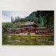 Beautiful and serene red Japanese temple scene jigsaw puzzle.