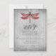 Send guests a simple and elegant Jewelled Dragonfly RSVP Card with your invitation. Response card design features a vibrant bejeweled dragonfly against a vintage distressed striped background. Personalise with the response date and menu choices. Additional wedding stationery available with this design as well.
