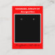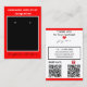 Handmade Jewelry By Name in white against bright red background. Crafted with Love in black script (keep or insert short tagline, or delete to leave area blank). Name will appear on front and backside. Two Small Circles against black and white framed background. NOTE: Circles are not pre-cut, you will need to use a Small hole punch to make clean cut small holes, to then place your Earrings in. Backside: Insert telephone number, email address, website, social media handle, as needed. Insert Your Business QR Code on left-hand side for customers to Shop 24/7, and Pinterest (or other) social media link site QR Code on right-hand side (leave Pinterest icon, or insert other social media icons, or delete icon). Original Design by TamiraZDesigns.