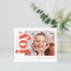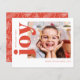 This is a budget, bright and simple modern red and white holiday card on a flat paper sheet. The design features a minimalist single photo combined with “joy” in a bold and classic serif font.