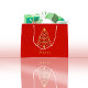 The Joyoux Noel design in red. A gift bag with the gold trimmed Christmas tree and colourful flex all around. This bag is a vivid and festive design for your holiday gifts.