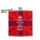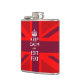 Red Keep Calm And Your Text on Union Jack Flag Hip Flask