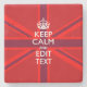 Red Keep Calm Have Your Text on Union Jack Flag Stone Coaster