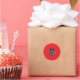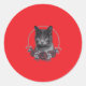 Red kitten classic round stickers, decorated with an adorable kitten and garland of roses.