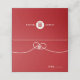 Modern minimalist double happiness knot of union, love and marriage in ruby red and ivory white wedding folded place card / guest escort card.