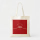 Modern minimalist double happiness couple's knot of union, love and marriage in ruby red and ivory white wedding party favour tote gift bag.