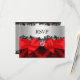 Red RSVP. Elegant lace damask design & red silk bow. Customise with your own details. Please note: All flat images. They do not have real bows, lace or jewels!