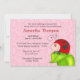 Cute lady bug baby shower invitation with a red and black ladybug sitting on a green leaf. The background is a pink and white design. This design is perfect for the mum to be who loves ladybugs. Customise with your baby shower information.
