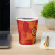 Red and orange silhouettes of various Chinese Lanterns as background + Golden vertical Chinese wishes + Happy New Year in English + small golden paper-cut of a Snake on a red lantern. Design on party paper cup. You can delete this small image if you want to use the design for all Chinese New Years. Matching party supplies, greeting card, horizontal holiday postcard, sticker and more. Perfect for Chinese New Year of the Snake 2025.