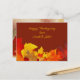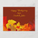Fall season postcard with custom wording and red leaves. Happy Thanksgiving in yellow script over brown with a border of bright fall foliage. Include a mailing address and return address in the templates on reverse - or delete the sample text to buy blank.