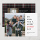 Christ is the reason for the season in this bold typographic card. The front features a single photo, while the back gives room for a second photo and custom message sitting atop a lovely holiday tartan plaid.