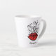 Fashion and makeup lover personalised latte mug with a weird lips gothic design featuring an ink drawing of a mouth with red lipstick decorated with white dots and strange swirls and customisable name.