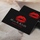 Red Lips Makeup Artist Plain Black Business Card