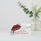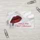 Modern chic lady's makeup themed business card done in a silver and white faux marbled look. Graphics of glamorous red lips, decorate the left side of the front. Personalize the red text to suit your business needs.
