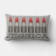 Decorative throw pillow features an original marker illustration of a row of tubes of red lipstick. Just personalise with your information.