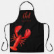 Nautical, summer and sea food theme. A red lobster on a black background. The text: Chef wiht a modern red hand lettered style script. Personalise and add your name.