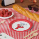 Adorable, smiling cartoon red Lobster wearing a Chef's hat Summer party plate for your next Lobster bake.